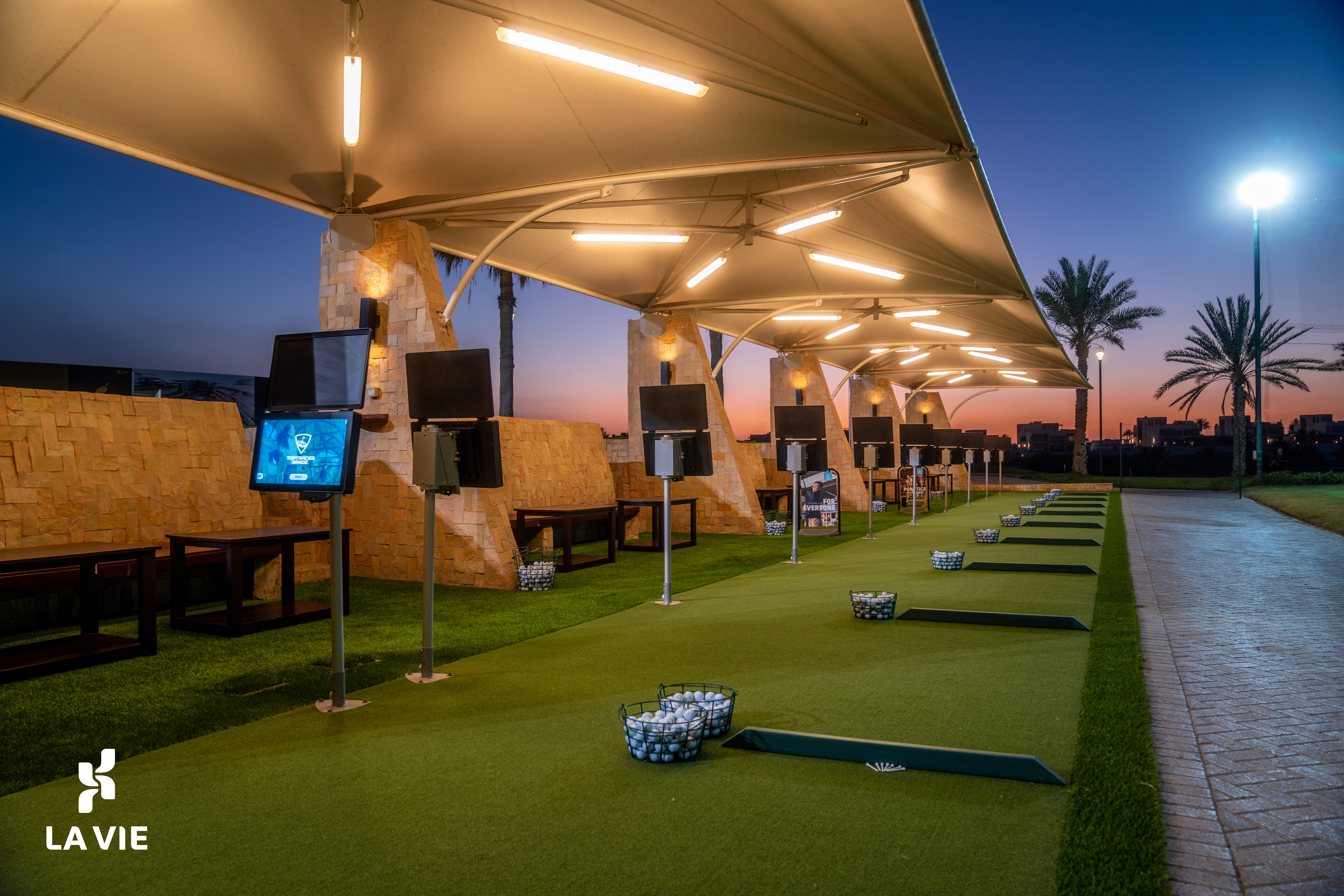 La Vie Club v Muscatu nabízí zcela nově koncipované 18jamkové mistrovské hřiště zasazené do malebné krajiny s dramatickými výhledy na pohoří Al Hajar a pobřeží Ománského zálivu. Hřiště navrhl architekt Paul Thomas a spravuje je renomovaná společnost Troon Golf, přičemž součástí zařízení je i inovativní TopTracer Driving Range, první svého druhu v Ománu. Layout využívá přirozeného terénu s wadi údolími, která přinášejí strategické výzvy a různorodost úderů.