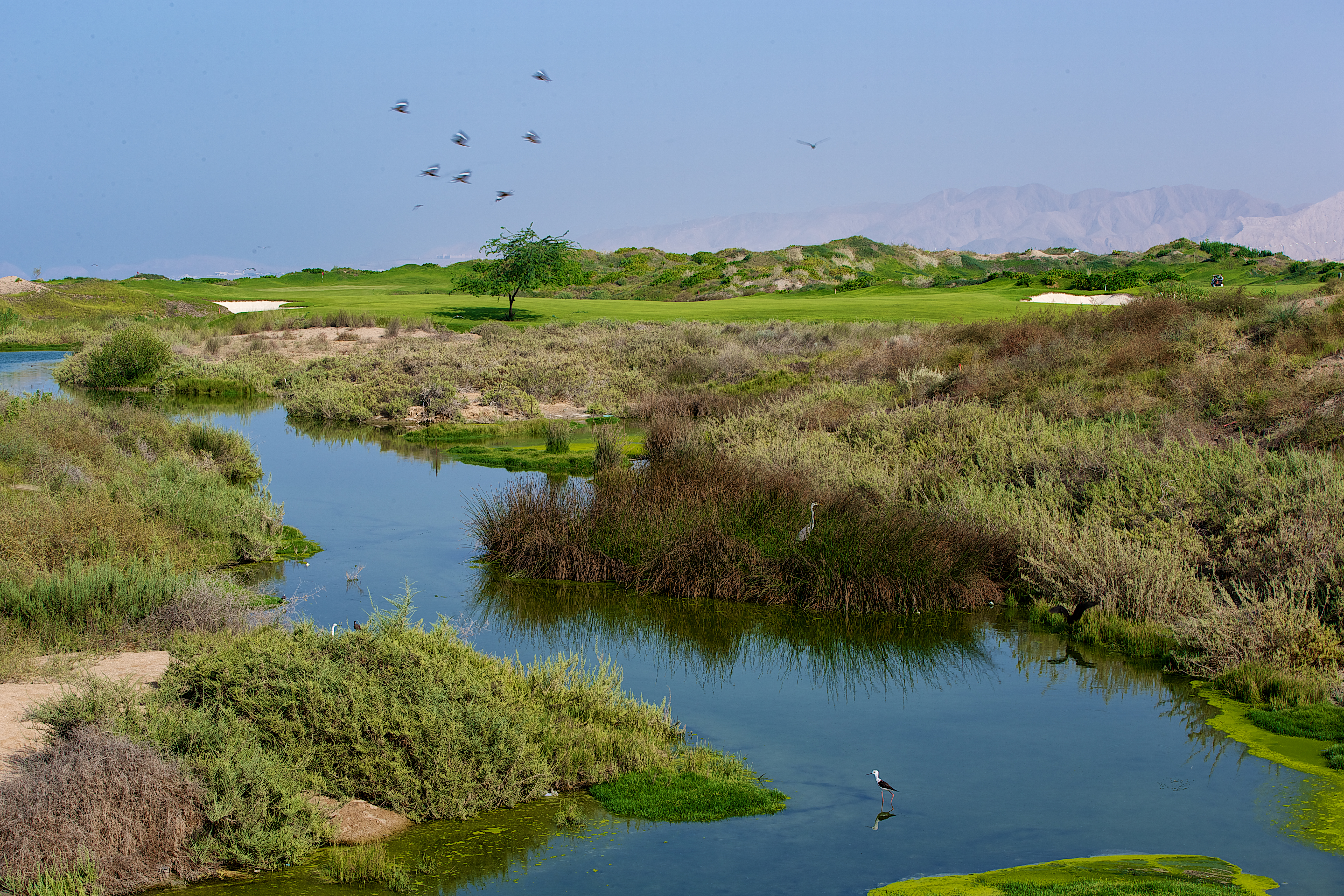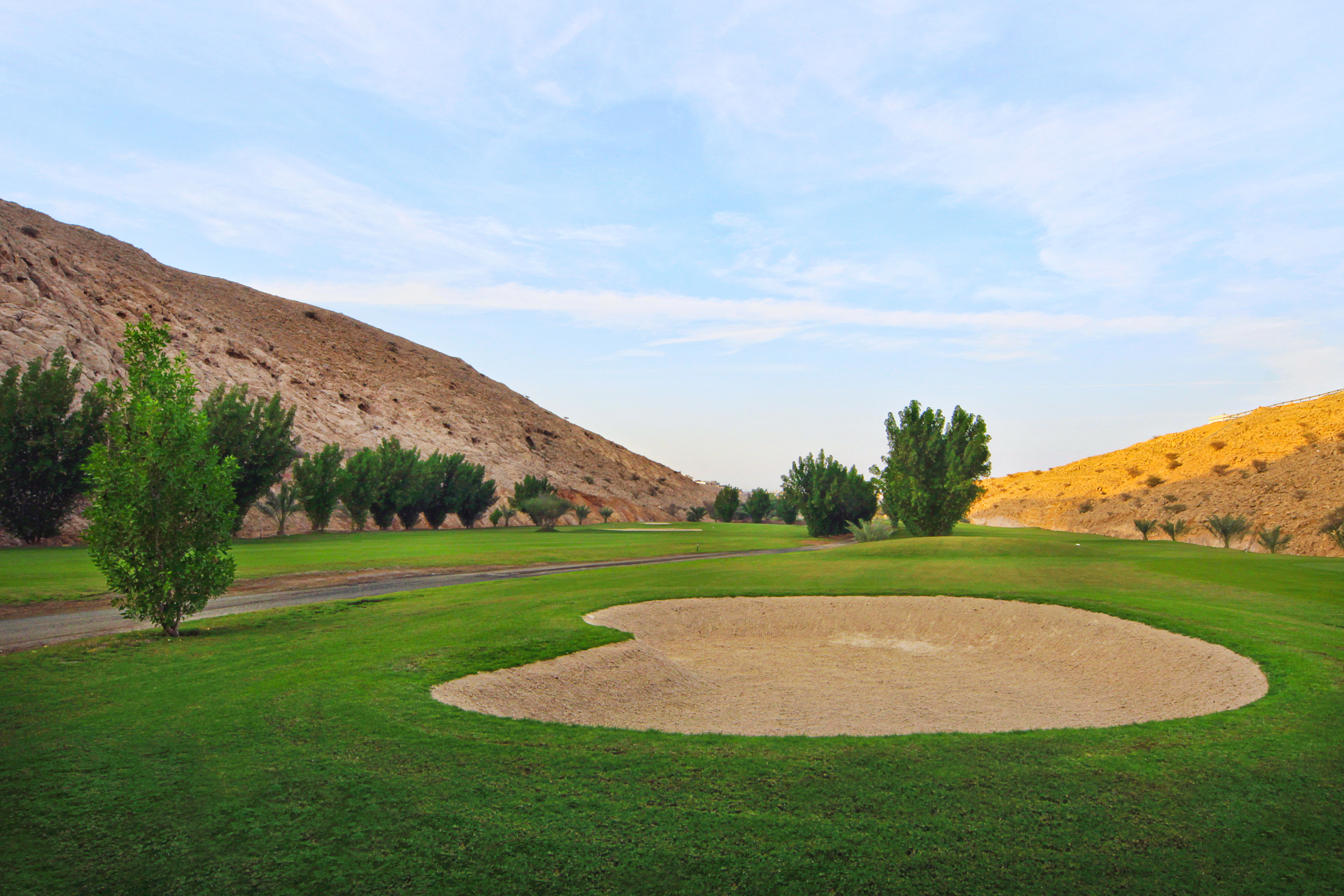Ghala Golf Club je nejstarší a jeden z nejuznávanějších golfových klubů v Ománu, založený v roce 1971. Hřiště navrhl anglický golfista Bill Longmuir a v průběhu let prošlo významnou rekonstrukcí, která mu dodala moderní charakter při zachování tradičního kouzla. Leží v srdci Muscatu v malebném údolí obklopeném pohořím Al Hajar, přičemž jednotlivé jamky se klikatí mezi skalami a nabízejí působivé výhledy na moře i hory. Hřiště má 18 jamek s parem 72 a vyžaduje přesnou hru díky užším fairwayím a promyšlenému rozmístění překážek.