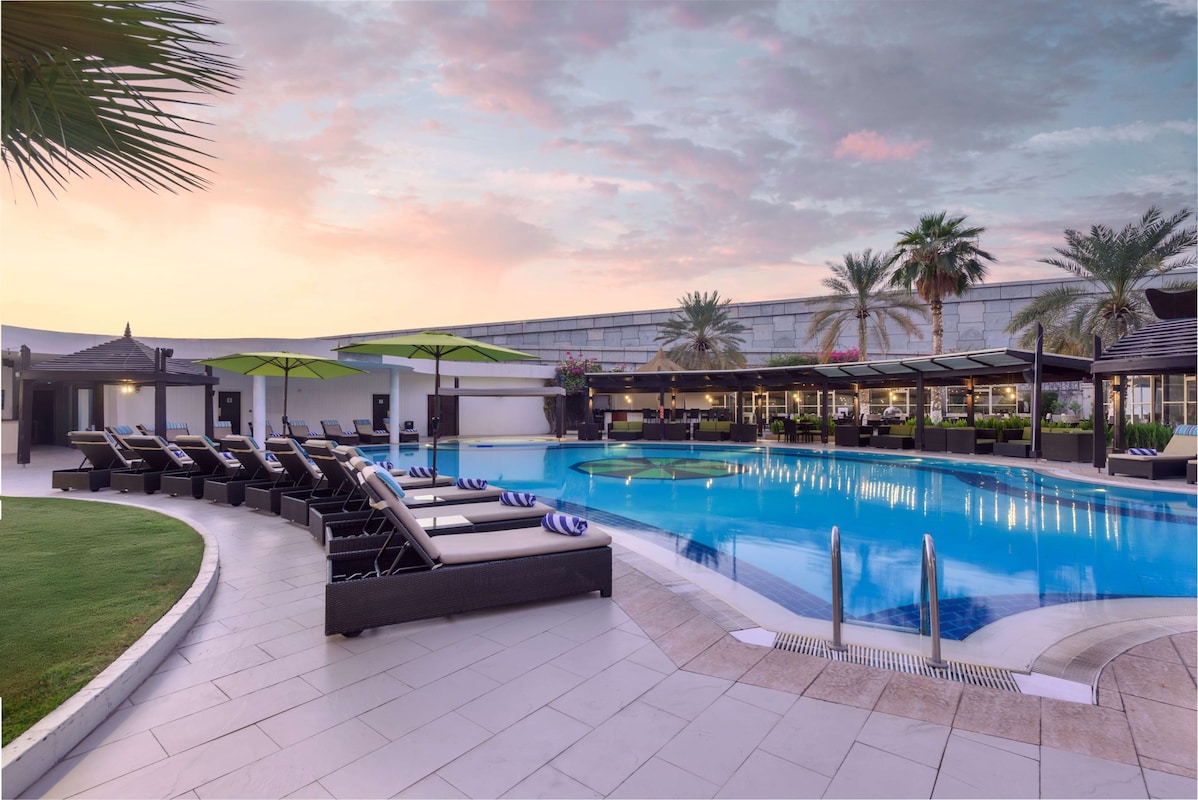 Radisson Blu Hotel Muscat se nachází v srdci obchodní a diplomatické čtvrti Al Khuwair, přibližně 15 kilometrů od mezinárodního letiště v Muscatu. Hotel je ideálním výchozím bodem pro objevování městských pláží, nákupních center a kulturních památek, jako je Royal Opera House Muscat. Díky své poloze v blízkosti hlavních silnic a veřejné dopravy nabízí snadný přístup k důležitým místům v Muscatu. Okolí hotelu je známé svou živou atmosférou, množstvím restaurací a kaváren, což z něj činí atraktivní destinaci pro obchodní i rekreační cestovatele.